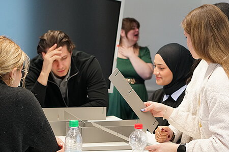 Das Erasmus+ Blended Intensive Programme (BIP) zum Thema Organisational Happiness, fand vom 20. bis 24. Oktober 2025 an der Technischen Hochschule Rosenheim statt. Insgesamt 17 Studierende und zwei Professorinnen und Professoren von vier europäischen Partnerhochschulen – darunter drei Mitglieder der DIVERSE European University Alliance – arbeiteten gemeinsam mit 14 Rosenheimer Studierenden sowie zwei Austauschstudierenden aus Thailand an innovativen Konzepten für mehr Zufriedenheit in Organisationen. Tatjana Erlewein, Organisatorin des BIP, ist überzeugt von dem Mehrwert des BIPs für die Studierenden: „Die Möglichkeit gleichzeitig Inhalte zu erarbeiten und wichtige Future Skills zu trainieren, ist einmalig.“